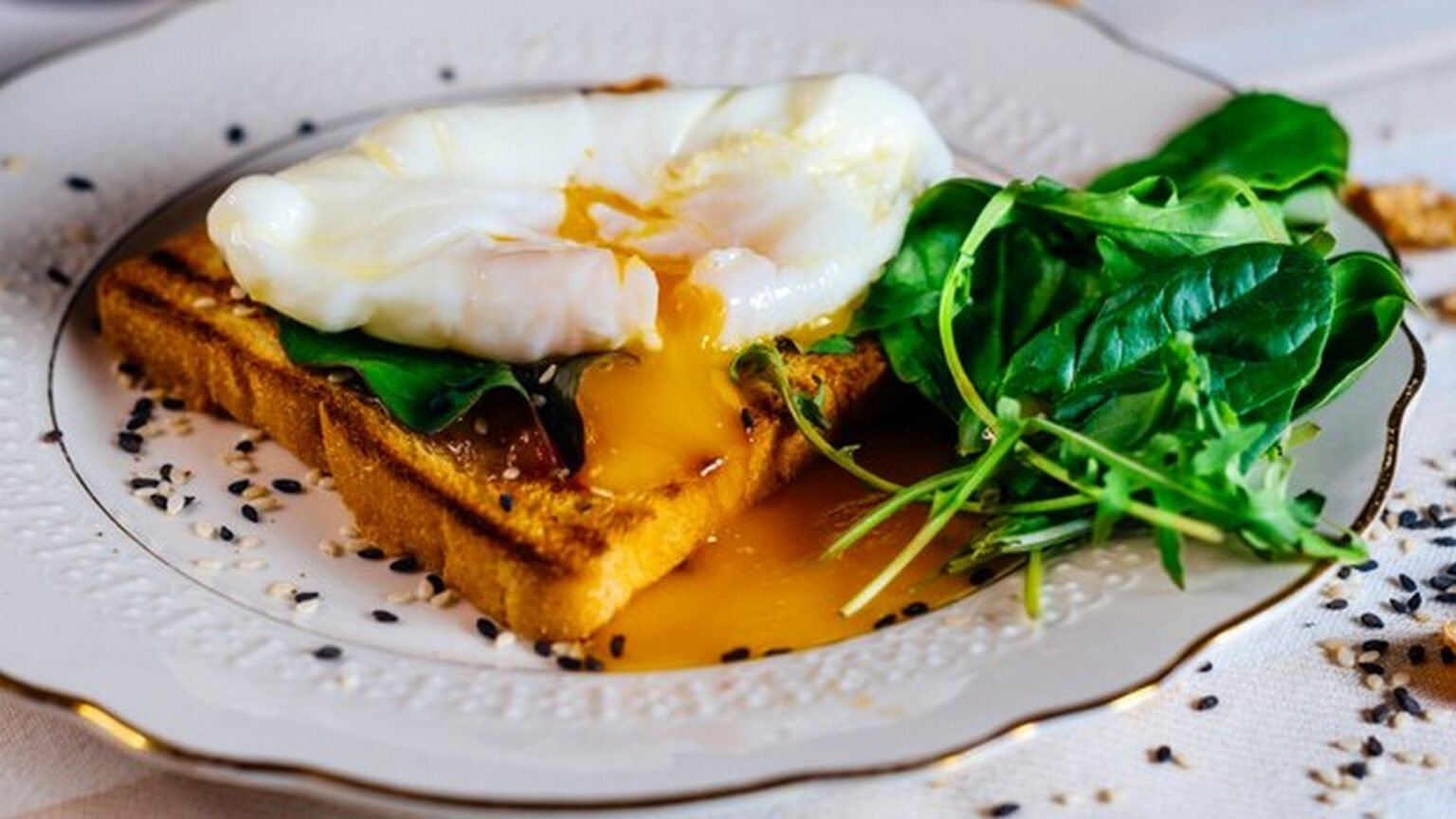 Salada de folhas com ovos pochê
